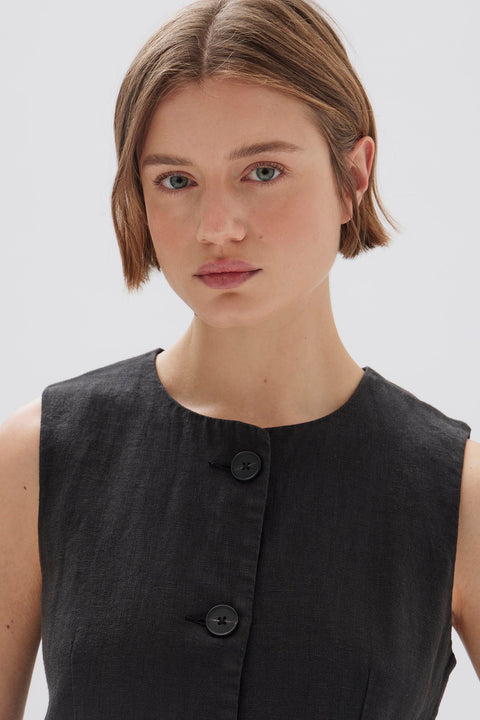 Our Coralie Linen Mini Dress is a signature shift dress shape with a relaxed fit, cut from 100% french linen. It features a high neckline and button details down the front and is the perfect everyday essential to add to your capsule wardrobe.