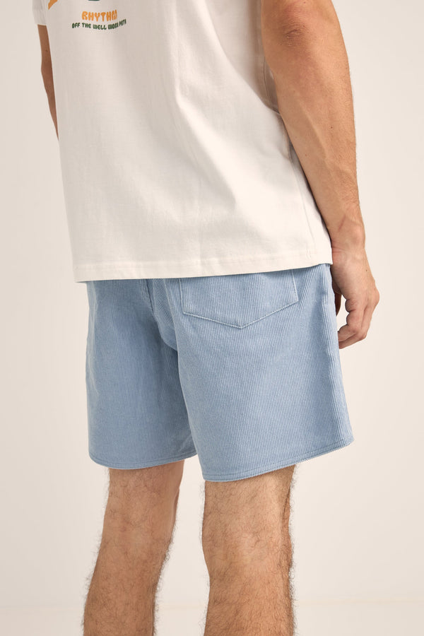 Relax in the Cord Jam Shorts, designed in a sky hue of 11-wale cotton corduroy. These shorts are equipped with an elastic waistband, poly drawstring, and side seam hand pockets. They're pre-washed for a vintage hand feel, offering a perfect blend of comfort and casual style with a shorter 17-inch out seam.