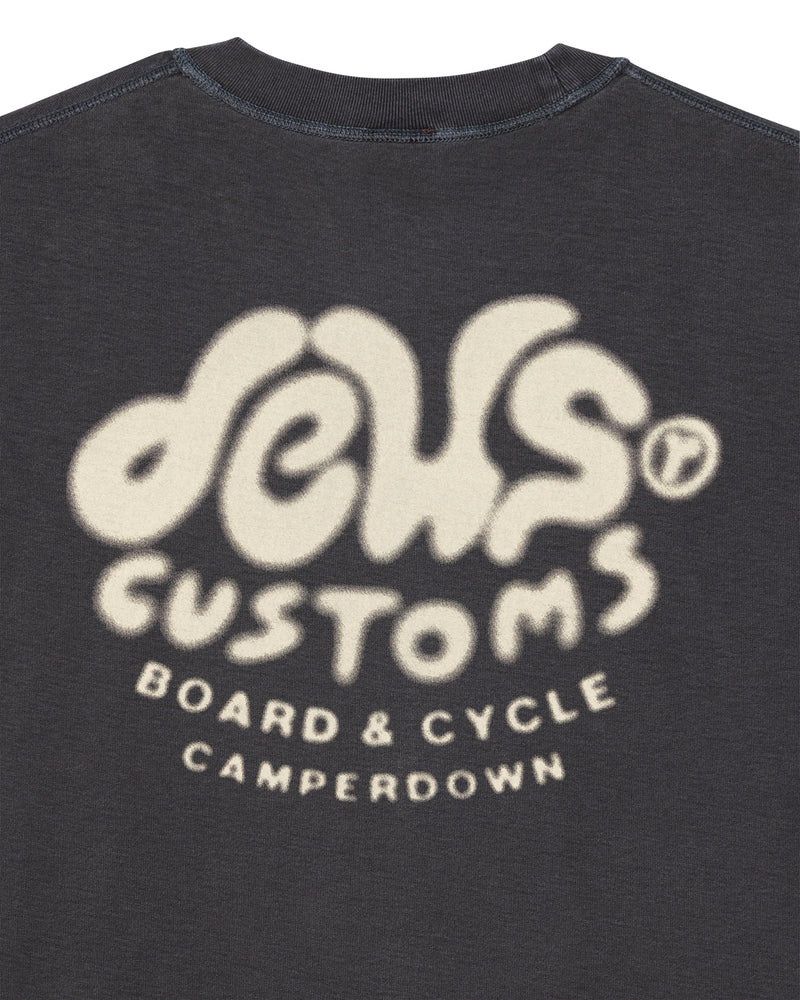 Skipping between dusty point breaks and neon roadside diners, here lives a perpetual vacation mindset. The loose fit Debris Reverse Tee spins recycled cotton jersey into endless sunset mode.