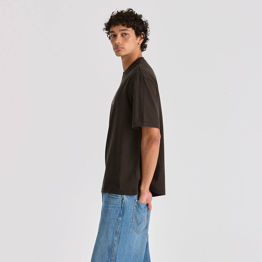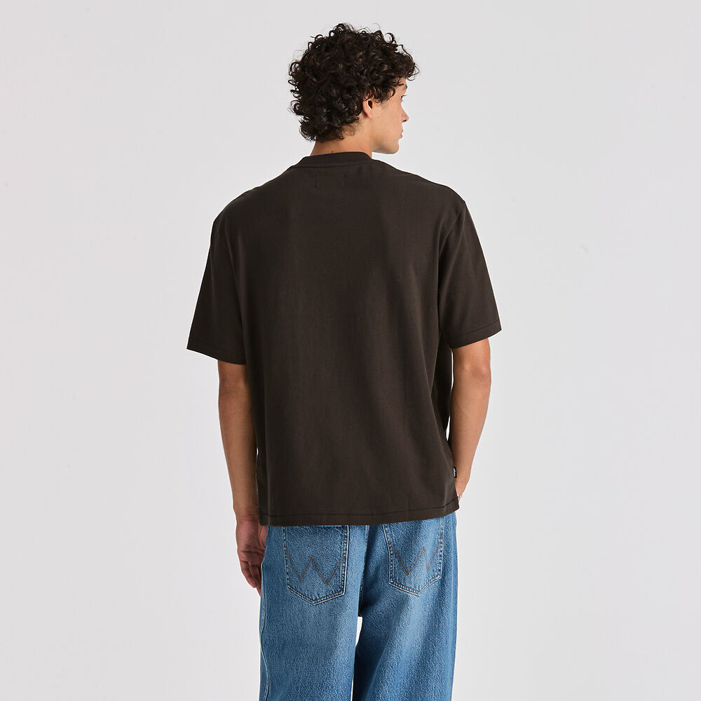 Our Slacker Tee silhouette is our baggiest, loose fitting tee. Designed to sit off shoulder and relaxed through the body. Crafted in a heavy weight, recycled cotton with a soft hand feel. Featuring a centre chest Wrangler logo graphic.