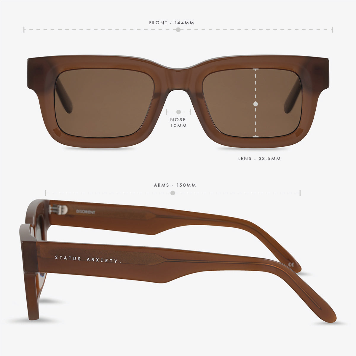 A subtle disruption of the expected. These unisex 'Disorient' sunnies are happy in the space somewhere in between. Made from premium acetate, fitted with quality polarised lenses, and finished with an anti-scratch, hot-stamped logo.