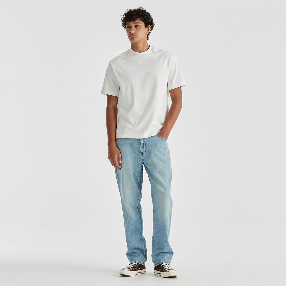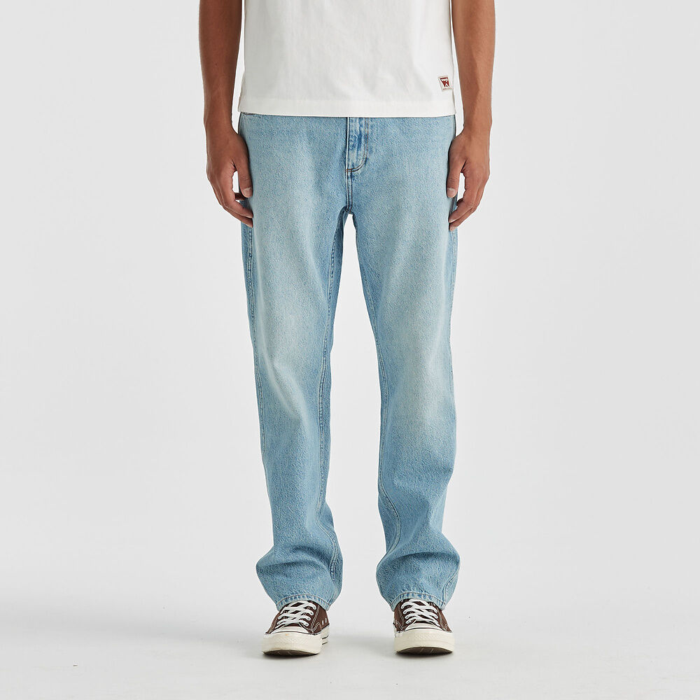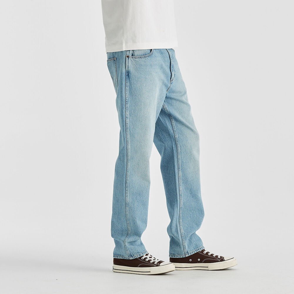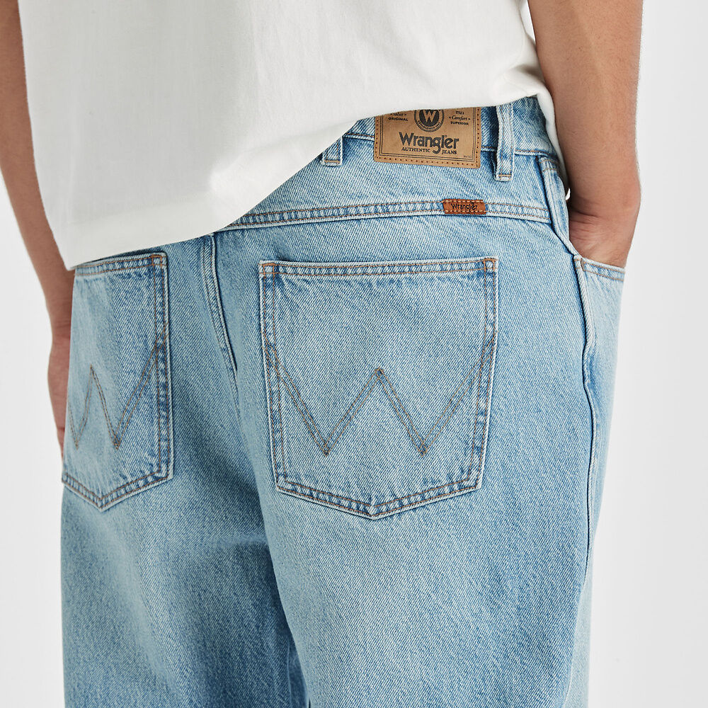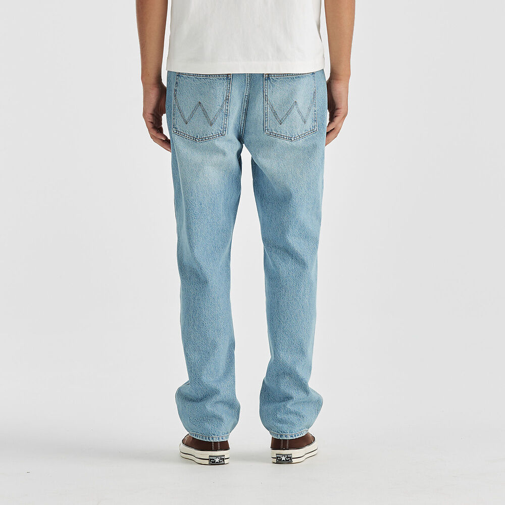 Our Eazy Straight fit is inspired by our classic straight leg jeans from the Wrangler archive library. Modernised for today with a square top block, they fall from a neat straight leg down to a considered leg length for a clean finish on your shoe. Made up of a vintage sunbleached blue they feature in a rigid denim with traditional Wrangler heritage inspired stitching and finished with vintage worn metal hardware.