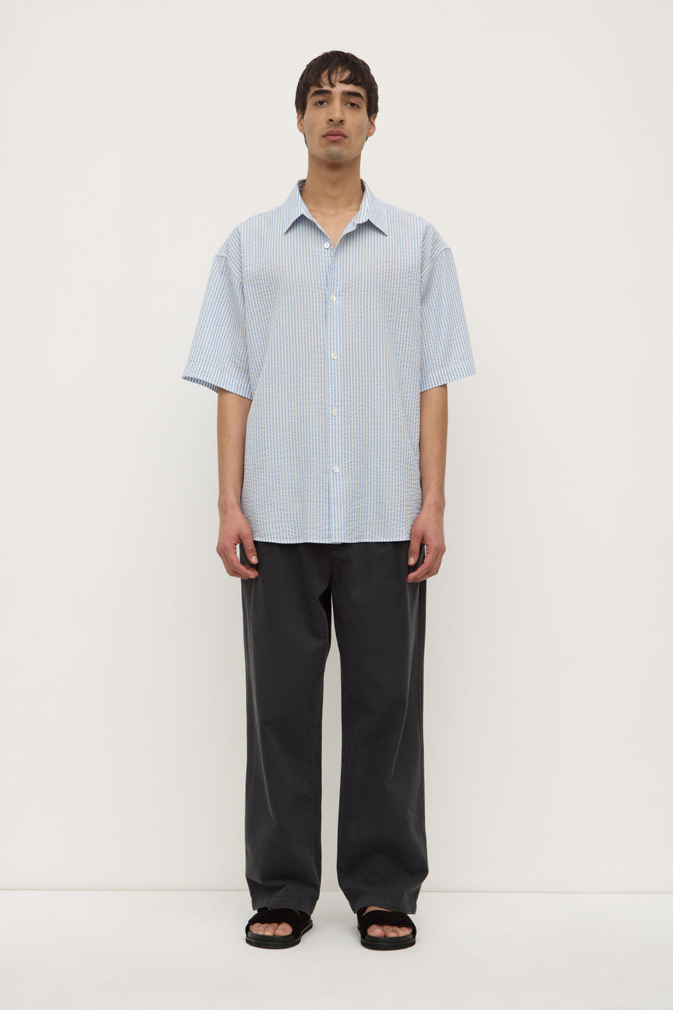 Crafted from a breathable seersucker fabric, this textured short sleeve shirt offers a relaxed fit and features a shaped hem and back pleat detail.