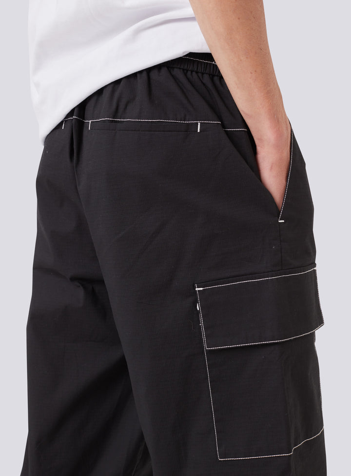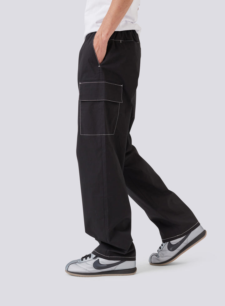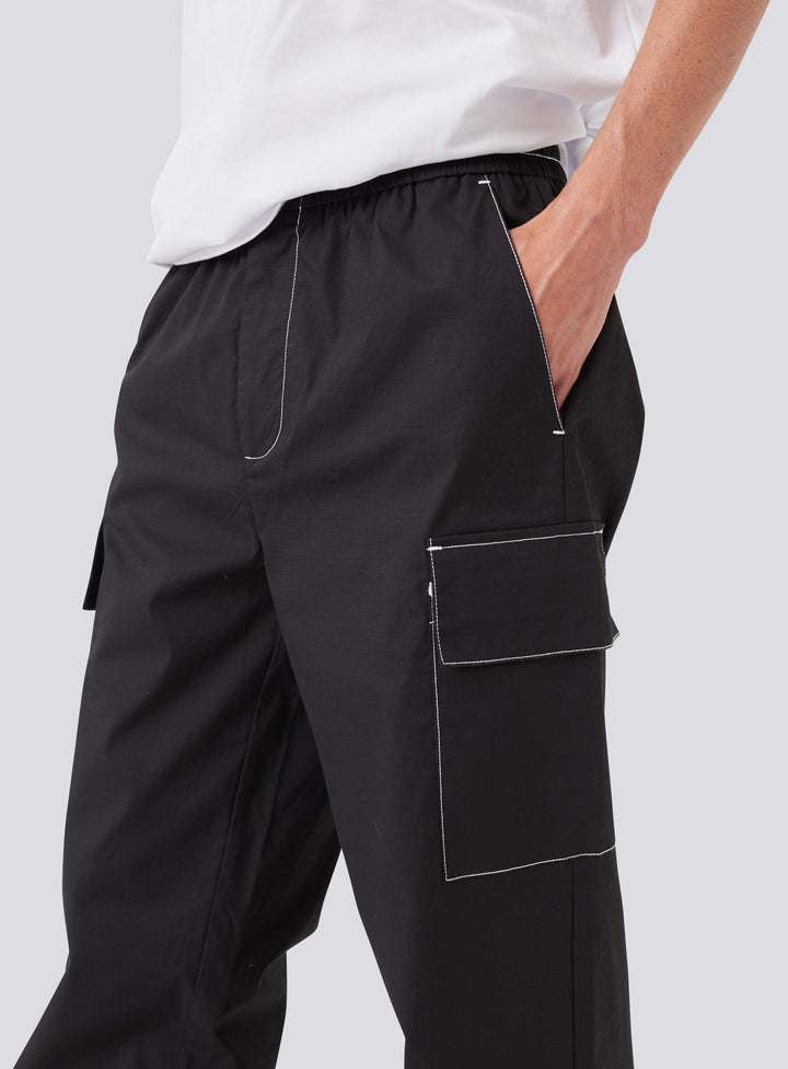 The Harvo Pant in Black is our boxy fit cargo pant made from stretchy cotton ripstop fabric and elasticated rear waistband for ultra comfort.