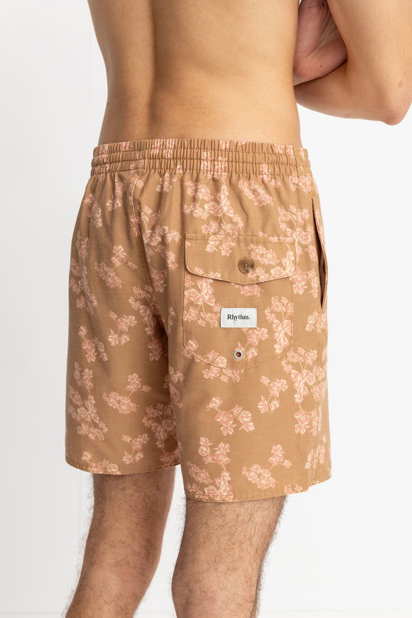 Embrace coastal cool with the Iris Beach Short in Tobacco. Featuring a seasonal yardage print and crafted from a blend of Recycled Polyester, Cotton, and Spandex, these 17-inch shorts include an elastic waistband, poly drawstring, side seam hand pockets, and a back patch pocket with a flap. Washed for a vintage hand feel, these shorts add a touch of effortless style to your beach-ready look.
