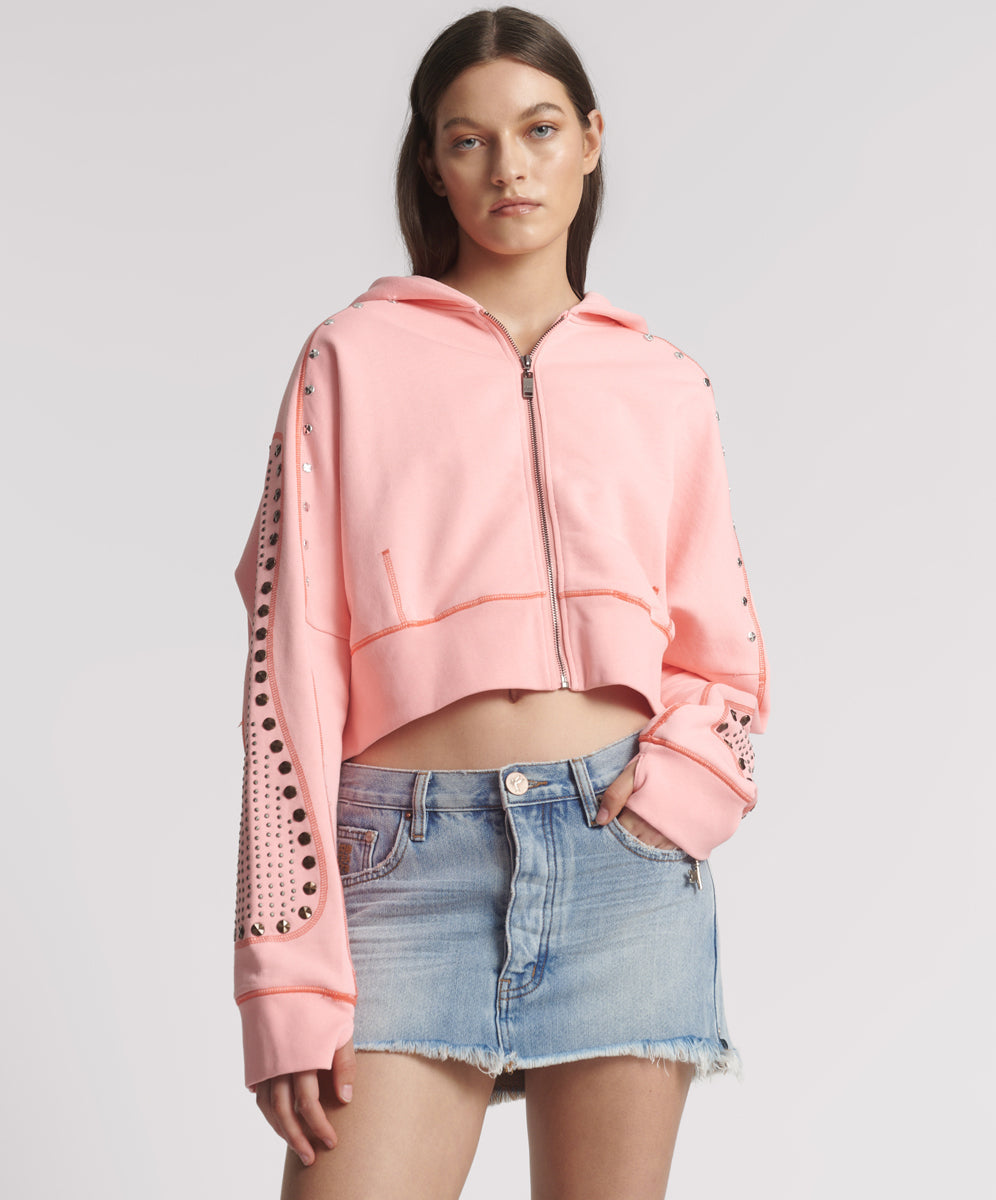 The JUNKYARD is an old-school classic denim mini skirt and one of our most popular styles. Low waist, relaxed fit, with a feminine curved hem designed to flatter. Featuring hand applied studs around the waistband and pocket with distressing in all the right places.