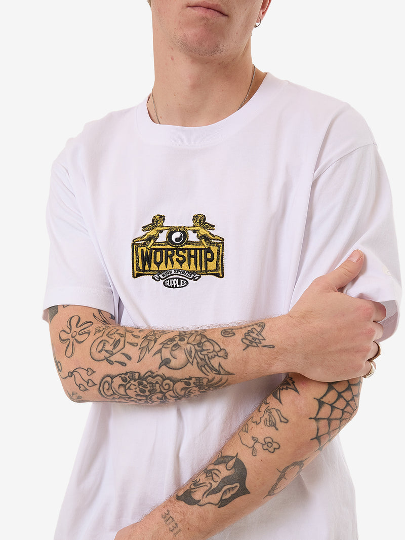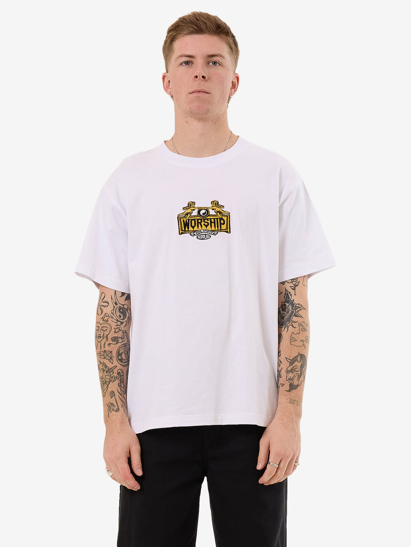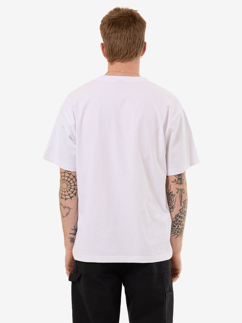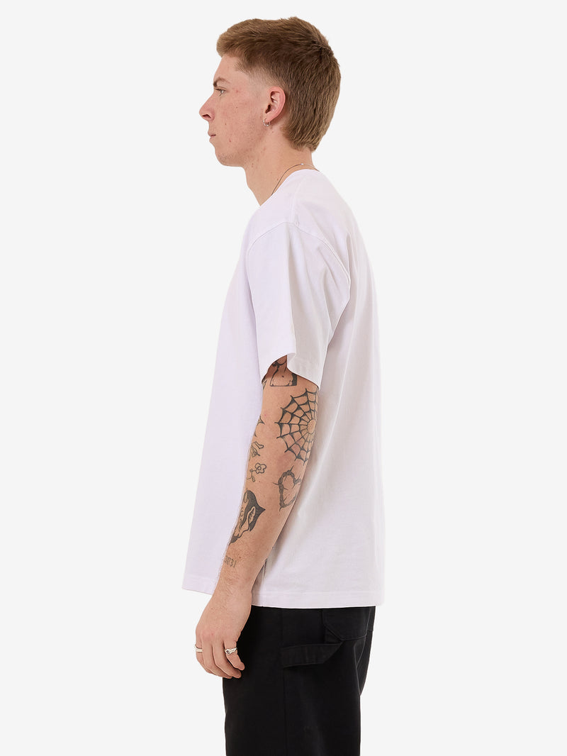 - The Lavish Tee in White delivers effortless comfort and a clean aesthetic, featuring a ribbed crewneck and a relaxed fit. Constructed from a heavyweight 245gsm cotton jersey, this men's tee is an everyday staple offering the perfect blend of durability and breathability. The signature embroidered chest detail elevates its minimalist design, ensuring a standout finish.