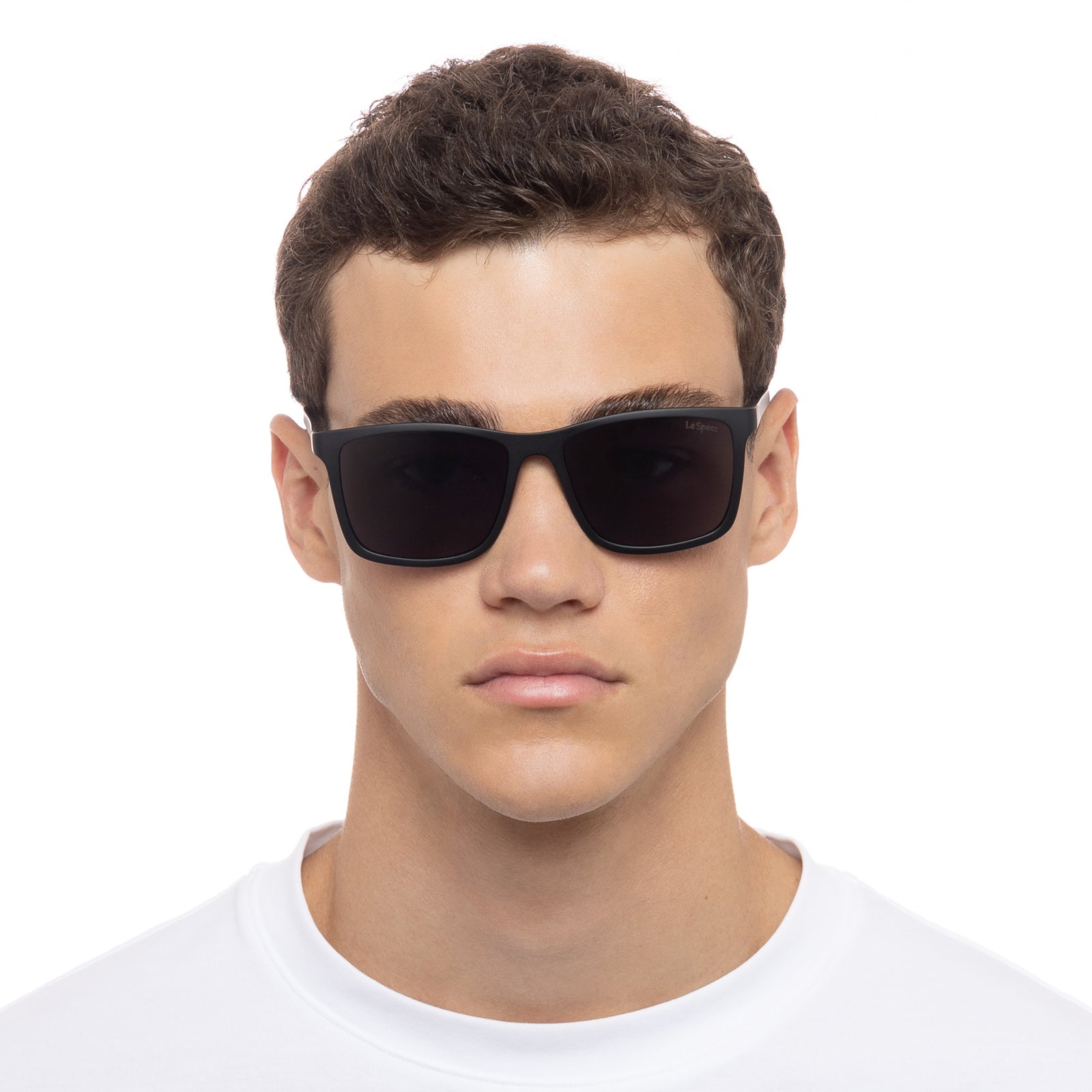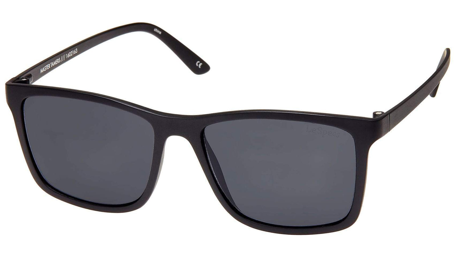 This masculine squared off sunglasses features a stylish, slightly oversized matte black frame.