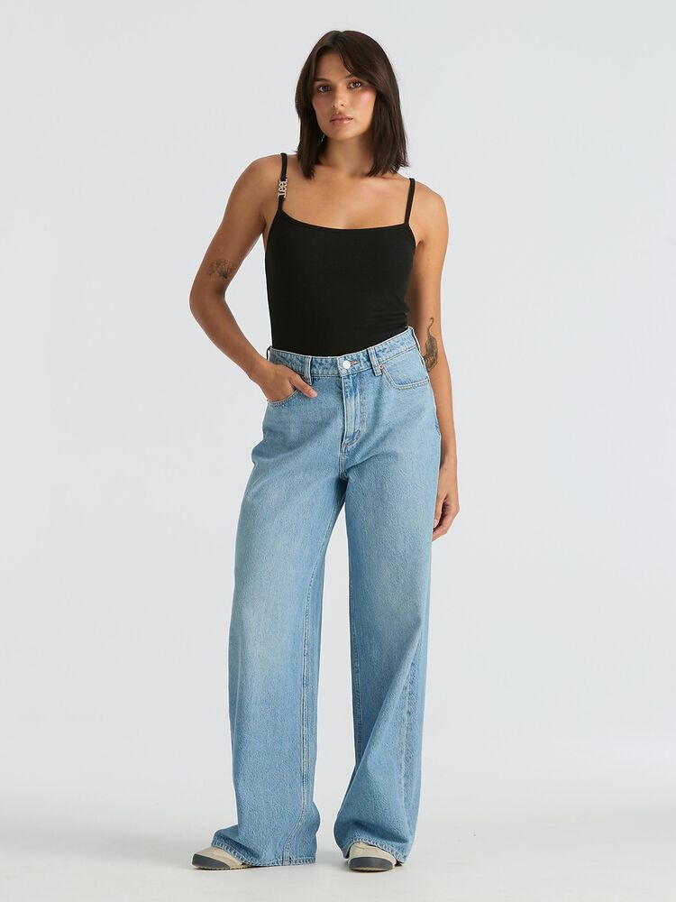 This season we introduce the Mid Slouch to our fit library. The Mid Slouch is our most relaxed profile jean. Designed to sit mid rise, and fit loose and extra baggy through the leg profile to stack on your shoe. Made in a soft, non stretch denim and finished in a worn bright blue wash.