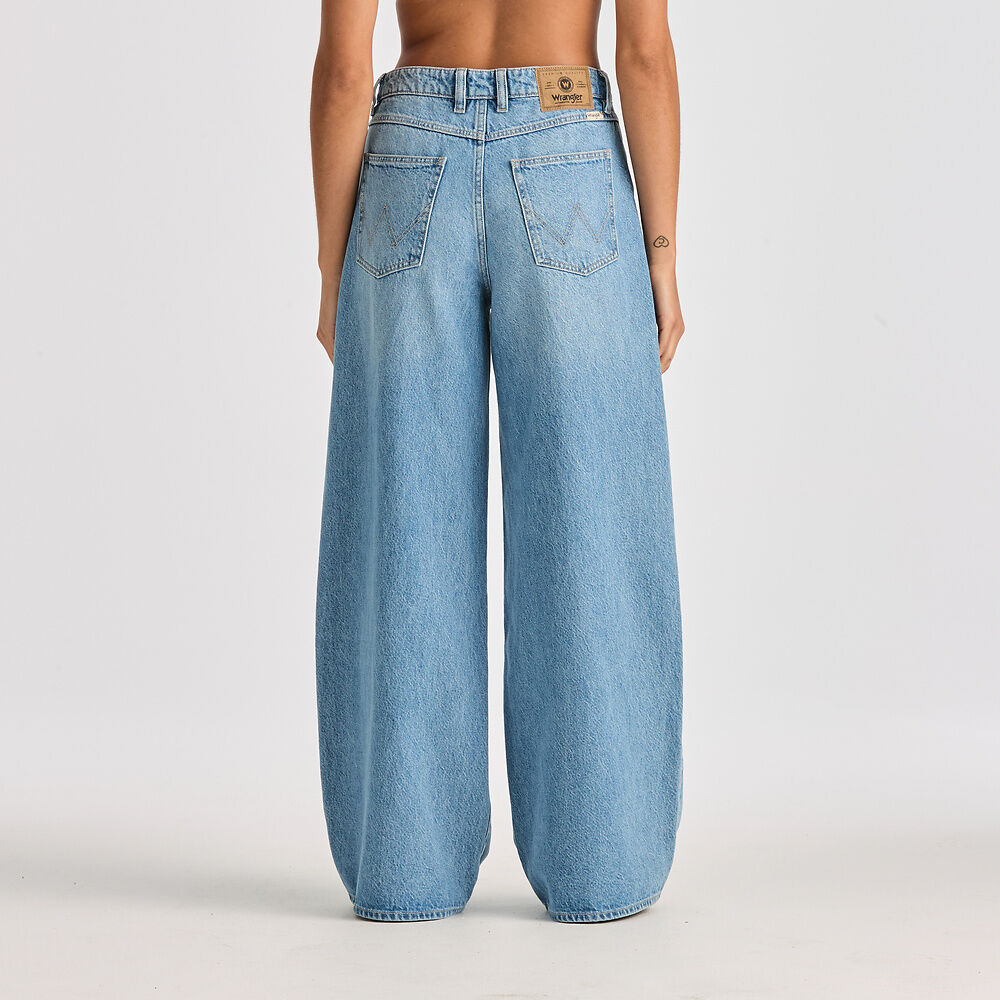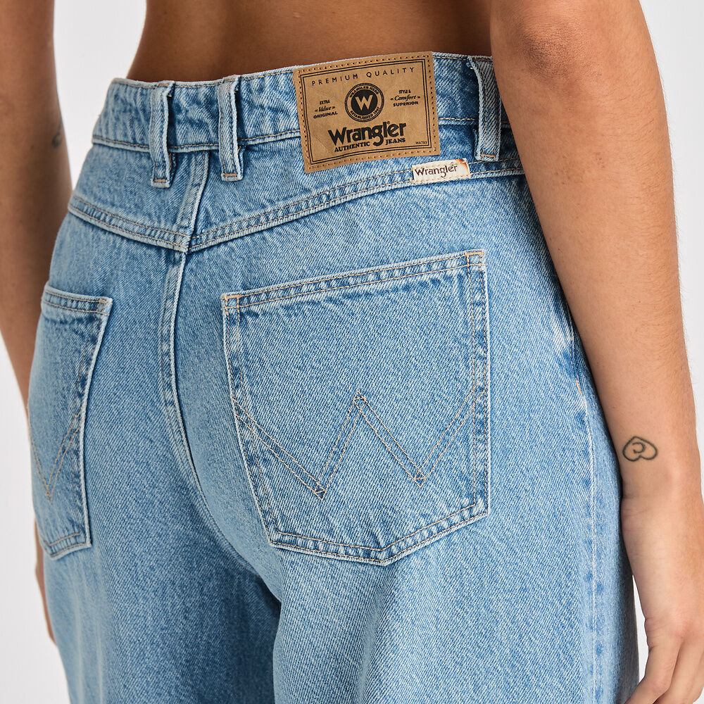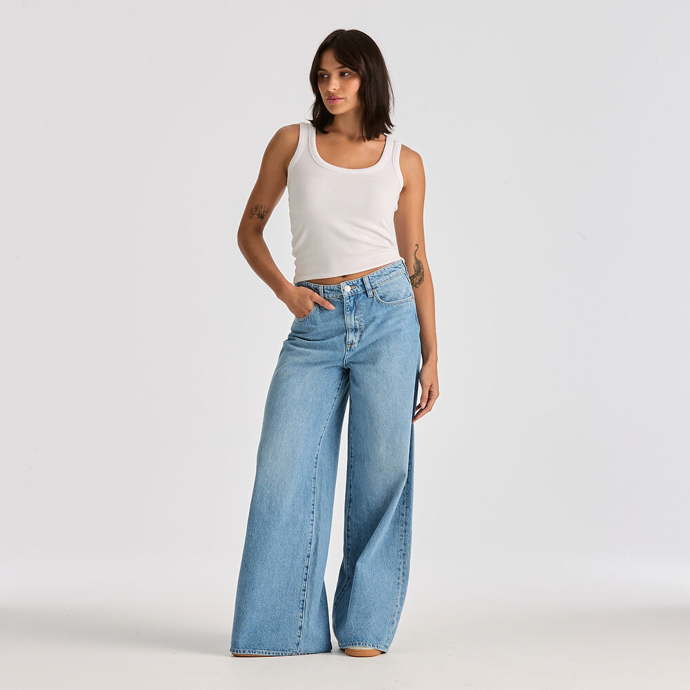 The Mid Stevie is the newest addition to out fit library. Designed to sit relaxed, and dropping to a dramatic wide leg silhouette the Mid Stevie stacks on your shoes for a true vintage flare look. Crafted in a vintage inspired light indigo wash, in a soft non-stretch denim with an authentic vintage texture that gets more unique with every wash.