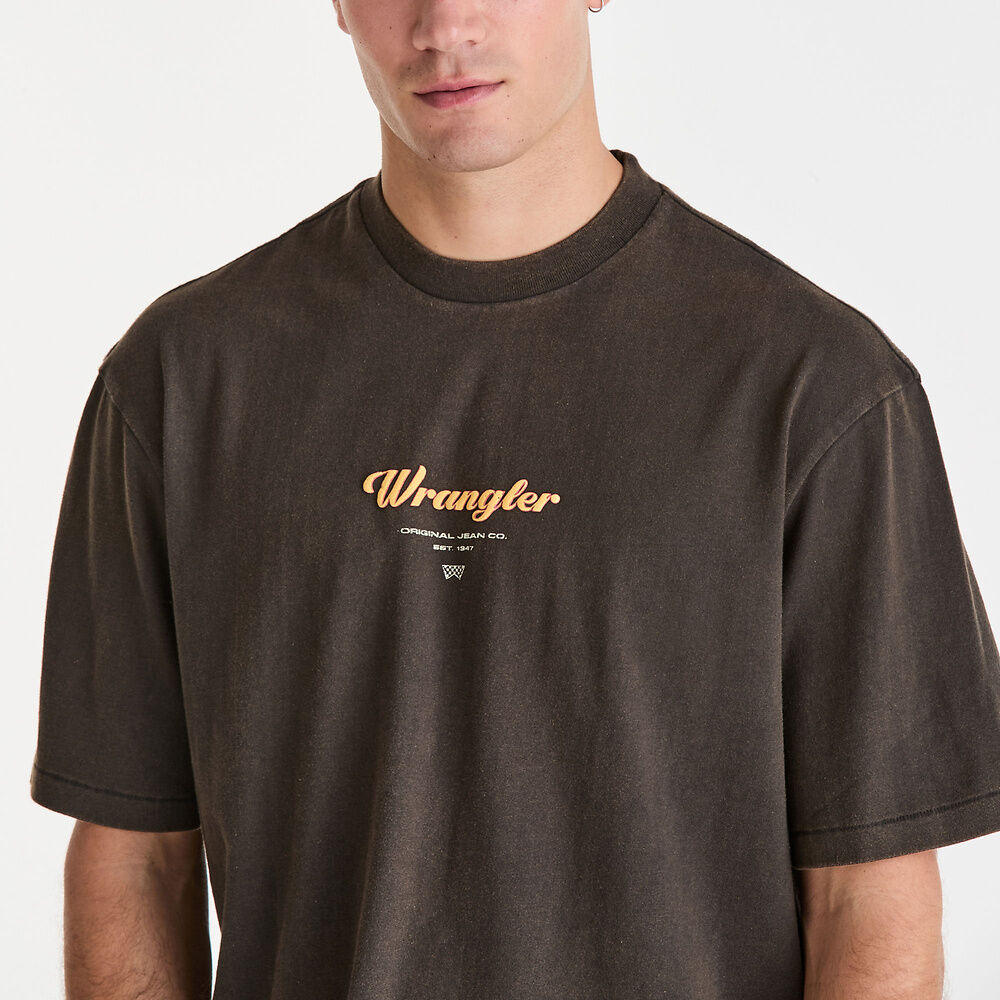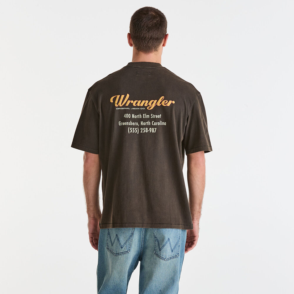 Our Slacker Tee silhouette is our baggiest, loose fitting tee. Designed to sit off shoulder and relaxed through the body. Crafted in a heavy weight, recycled cotton with a soft hand feel. The Northern Elm Slacker Tee features a vintage inspired motel business card graphic