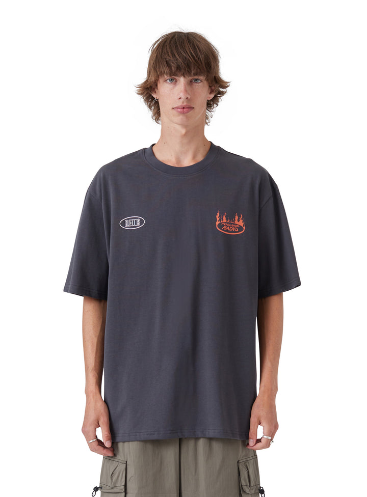Relaxed, boxy fit with a thicker neckline. Crafted from heavyweight 260g cotton for a true vintage feel. Features custom screenprinted artworks.