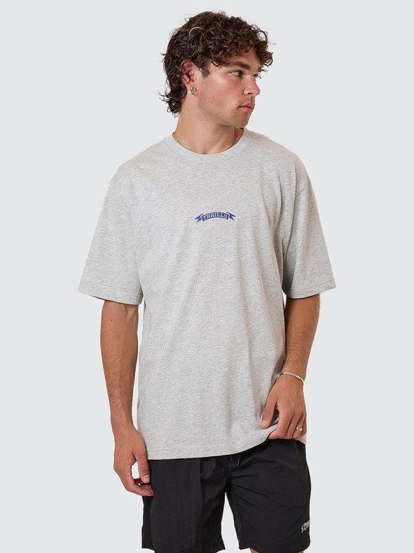 Subtle branding but with a heavy presence, the Pennant Embro Oversize Fit Tee in Snow Marle keeps it minimal with just the right edge. Crafted from heavyweight cotton denim, it offers a weighty, premium hand feel in an oversized fit for easy wear and maximum movement. Finished with a tonal embroidered logo, itÕs the kind of relaxed fit tee that slots seamlessly into your men's streetwear Australia rotation. Whether youÕre rocking it with casual cotton shorts or baggy denims, this piece is the perfect combo of minimalist, heavyweight, and pure Thrills tee Australia DNA.