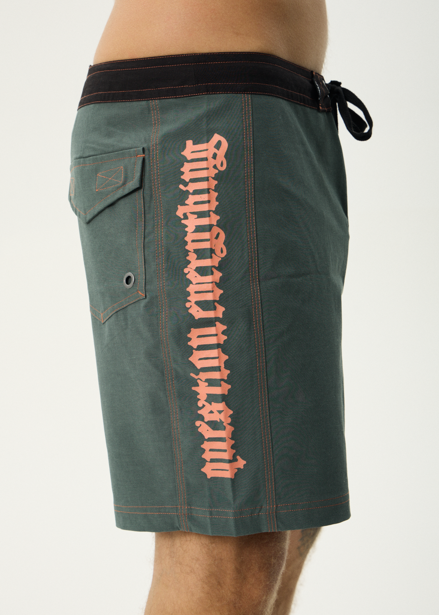 Designed with quick dry, water repellent 4 way stretch hemp fabric, an added inseam through the leg for improved movement, a mesh fly flap with drawcord closure, cargo pockets with velcro closure, contrast side panel details with screen printed artwork, and contrast stitching.