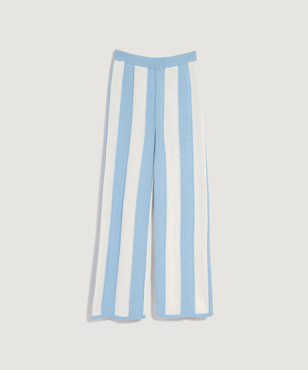 An optimistic take on summer lounging, the Striped Knit Pants are a relaxed, straight leg pant knitted from 100% cotton. Featuring a playful contrast stripe throughout, for a fun addition to the summer wardrobe. Wear as a set with the Striped Polo Knit.