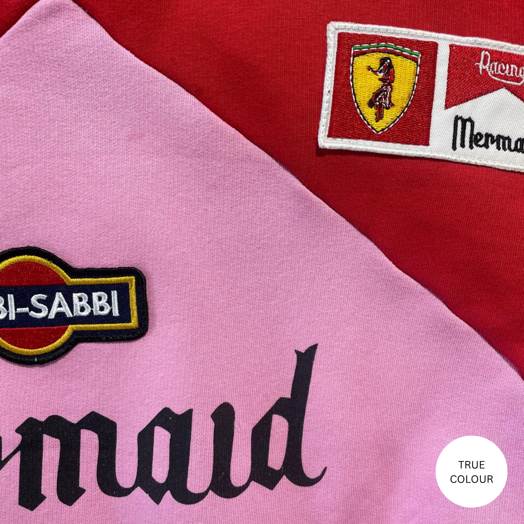 Designed for a relaxed unisex fit, this standout piece features bold prints and embroidered badges, a large graphic on the front, and a striking print on the back.
