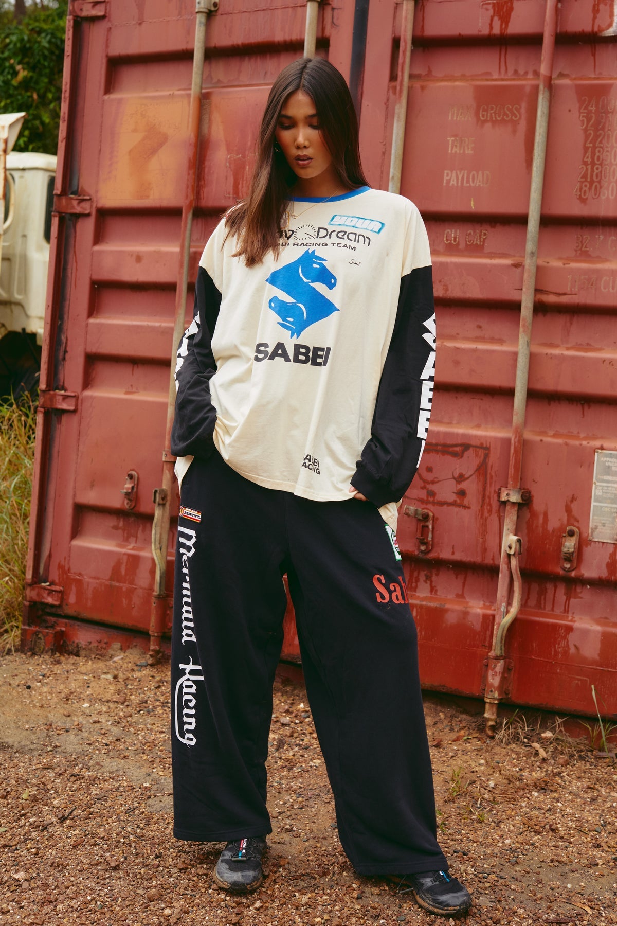 Washed, worn, and ready to ride. Our long sleeve vintage tee is giving main character at the track vibes. It’s made from 100% cotton, enzyme washed to feel like you’ve had it since your first race, and finished with bold colour blocking, a statement front & back print with Sabbi arm prints.