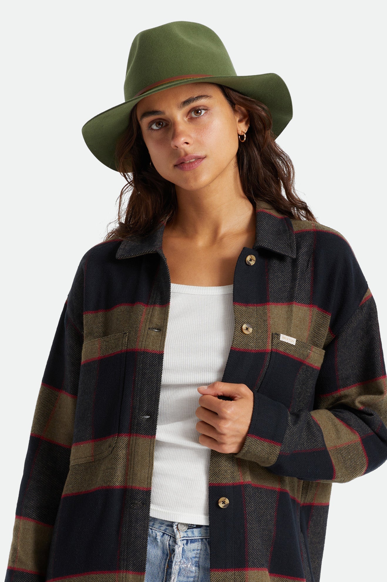 The Wesley is a polished take on the classic fedora. Crafted with lightly structured cruelty-free wool felt and finished with a genuine leather band, this looks as good at the office as it does on date night. Customize your fit with an internal adjustable Velcro strap.